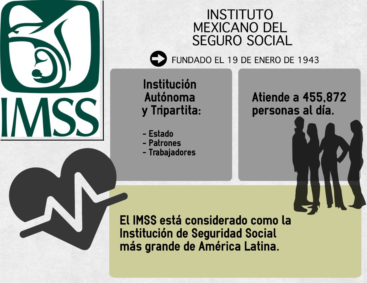 El IMSS está considerada como la institución de seguridad social más grande de América Latina. Fue fundada el 19 de enero de 1943 por decreto presidencial del entonces Presidente de la República, el General Manuel Ávila Camacho.